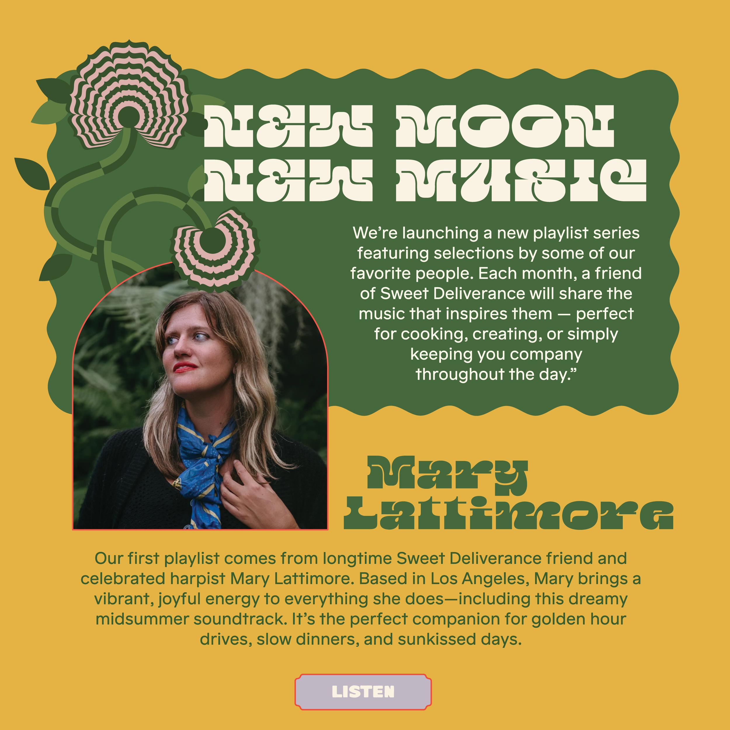 Earth Ship developed the art direction and visual identity for New Moon Notes, a monthly newsletter for Sweet Deliverance. The work includes a custom lettermark and a cohesive typography system, designed to feel creative and playful while remaining rooted in the brand’s core aesthetic. Each edition is curated and designed by Earth Ship, with the visual language evolving subtly month to month while maintaining a consistent framework. The result is a recurring publication that supports an ongoing connection with the Sweet Deliverance community.